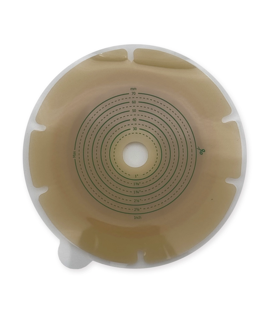 пластина гідроколоїдна для двохкомпонентного калоприймача – нестерильний пристрій, який наноситься та приклеюється до перистомальної шкіри для полегшення правильного розташування та закріплення фланця кишкового мішка стоми (наприклад, одно- чи багаторазовий) і захищає від протікання. Виріб використовується для тривалого носіння, не викликає роздратування шкіри і легко приклеюється до передньої черевної стінки. Правильне наклеювання пластини гарантує її носіння протягом декількох діб. Еластичність адгезиву дозволяє пластині прекрасно підлаштовуватися під рельєф шкіри, не обмежуючи рухів і додаючи пацієнтові почуття впевненості.