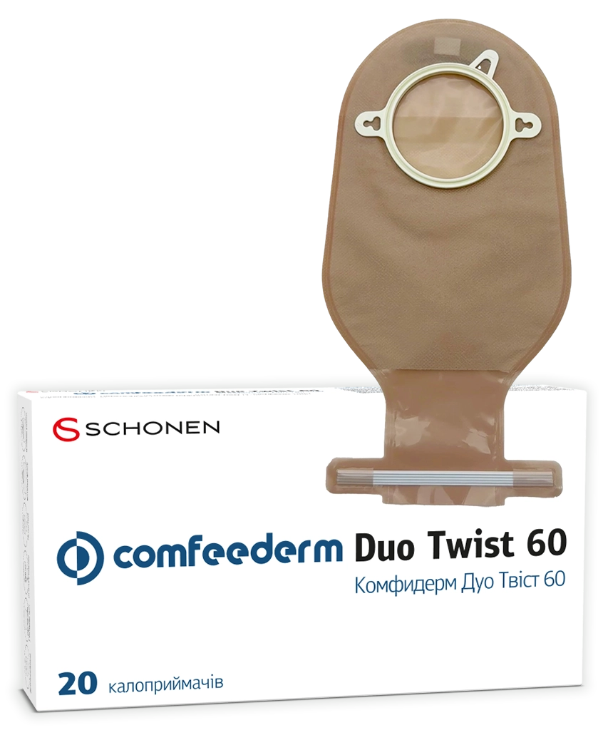 Найменування: Комфидерм Дуо Твіст 60, калоприймач двокомпонентний відкритого типу із застібкою твіст